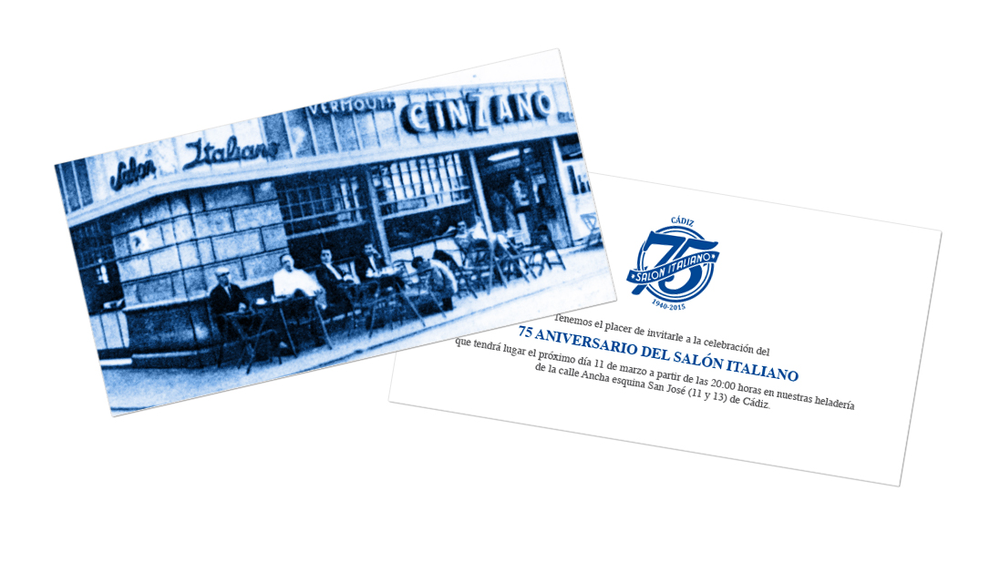 Este año celebra una de las heladerías más emblemáticas de Cádiz su 75 cumpleaños: SALÓN ITALIANO. 75 años ofreciendo a sus clientes sus magníficos e internacionales Topolinos, esa fórmula secreta que hace único a su helado de fresa o tan refrescaste a los maravillosos helados de limón. Una tradición de tres cuartos de siglo, llena de anécdotas, ideas, sabores e historias… Que alegría que contaran con nosotros para hacer su logotipo conmemorativo y ayudarles en toda su celebración.