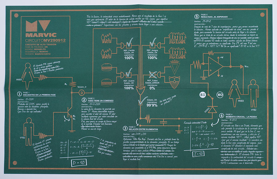 Se conocieron en la carrera, los dos son Ingenieros de Telecomunicaciones, así que a nuestro criterio, esto debía ser un ingrediente importante para nuestro diseño. De esta manera, “creamos” la empresa MARVIC (MARía – VICtor) que presentaba la solución a un complejo problema científico plasmado en un circuito en donde los elementos MY83 (María) y VX82 (Victor) debían encontrarse.