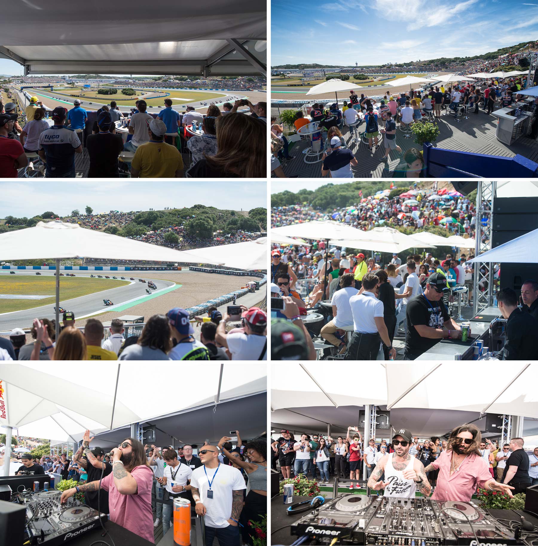 Se equipó con pantallas que retransmitían las carreras en directo, además de ofrecer telemetría y streaming de los equipos. Montamos un equipo de sonido muy potente, además de incluir un espacio reservado como escenario, donde los artistas invitados amenizaban la estancia en el Burladero entre carrera y carrera.