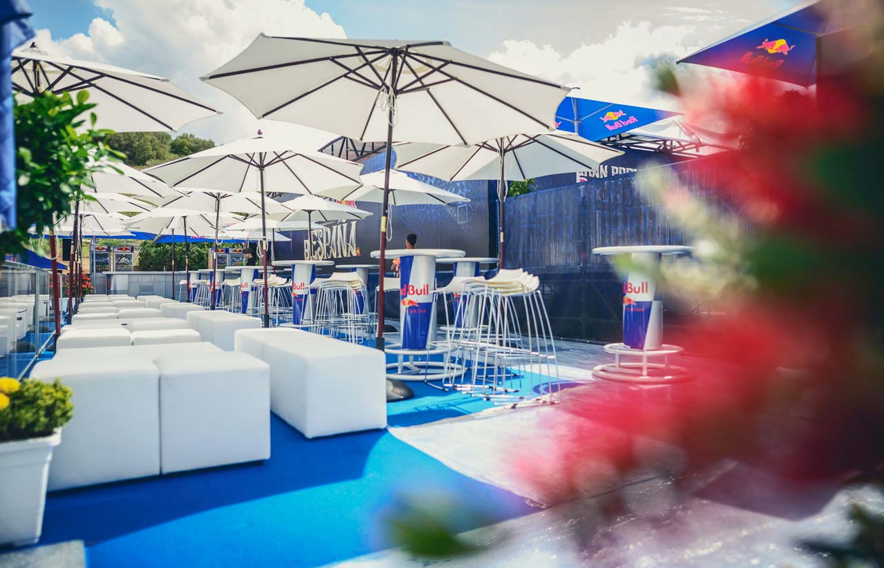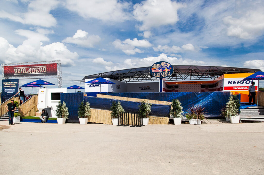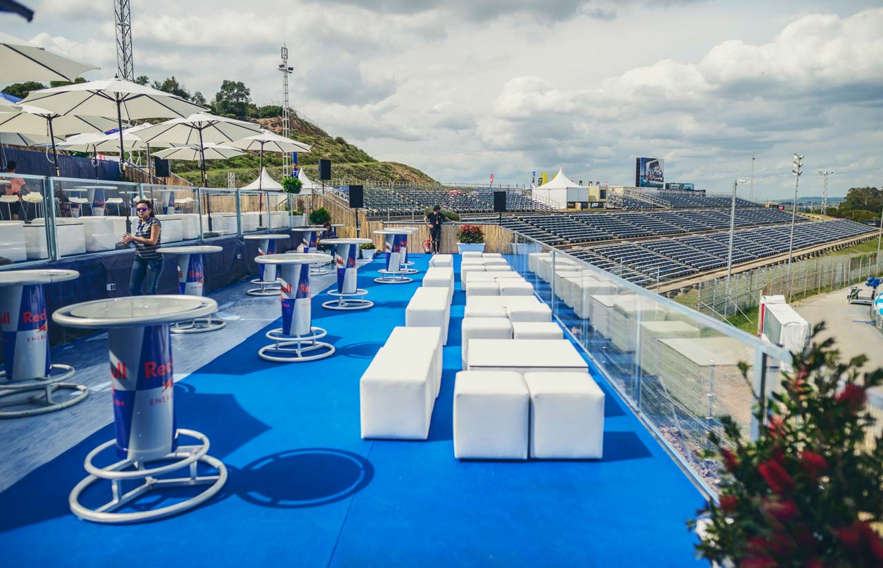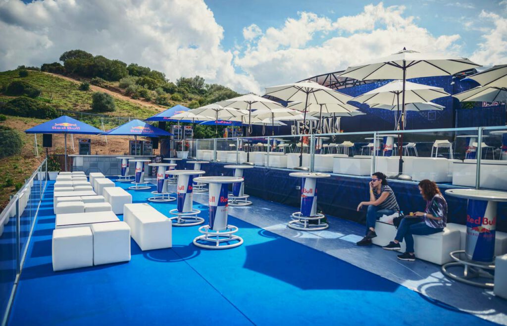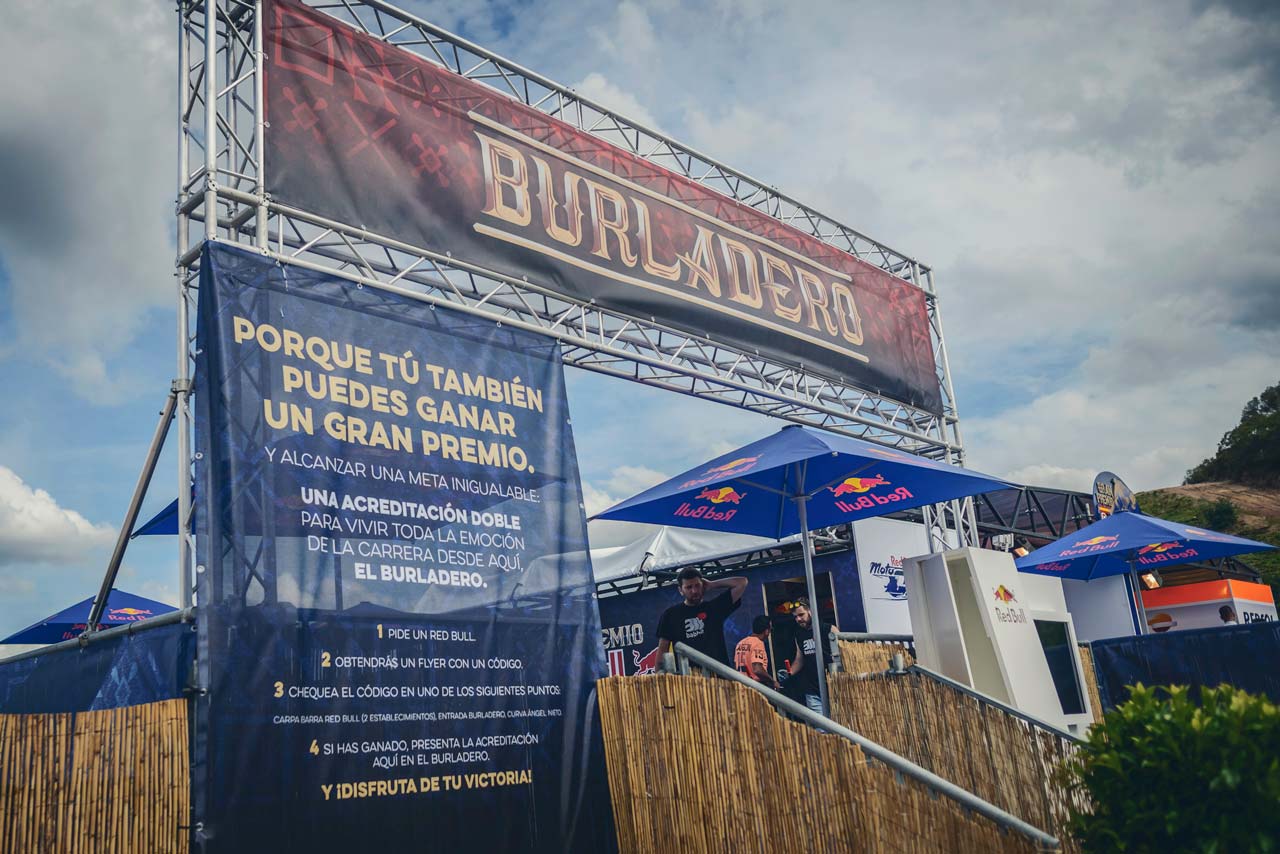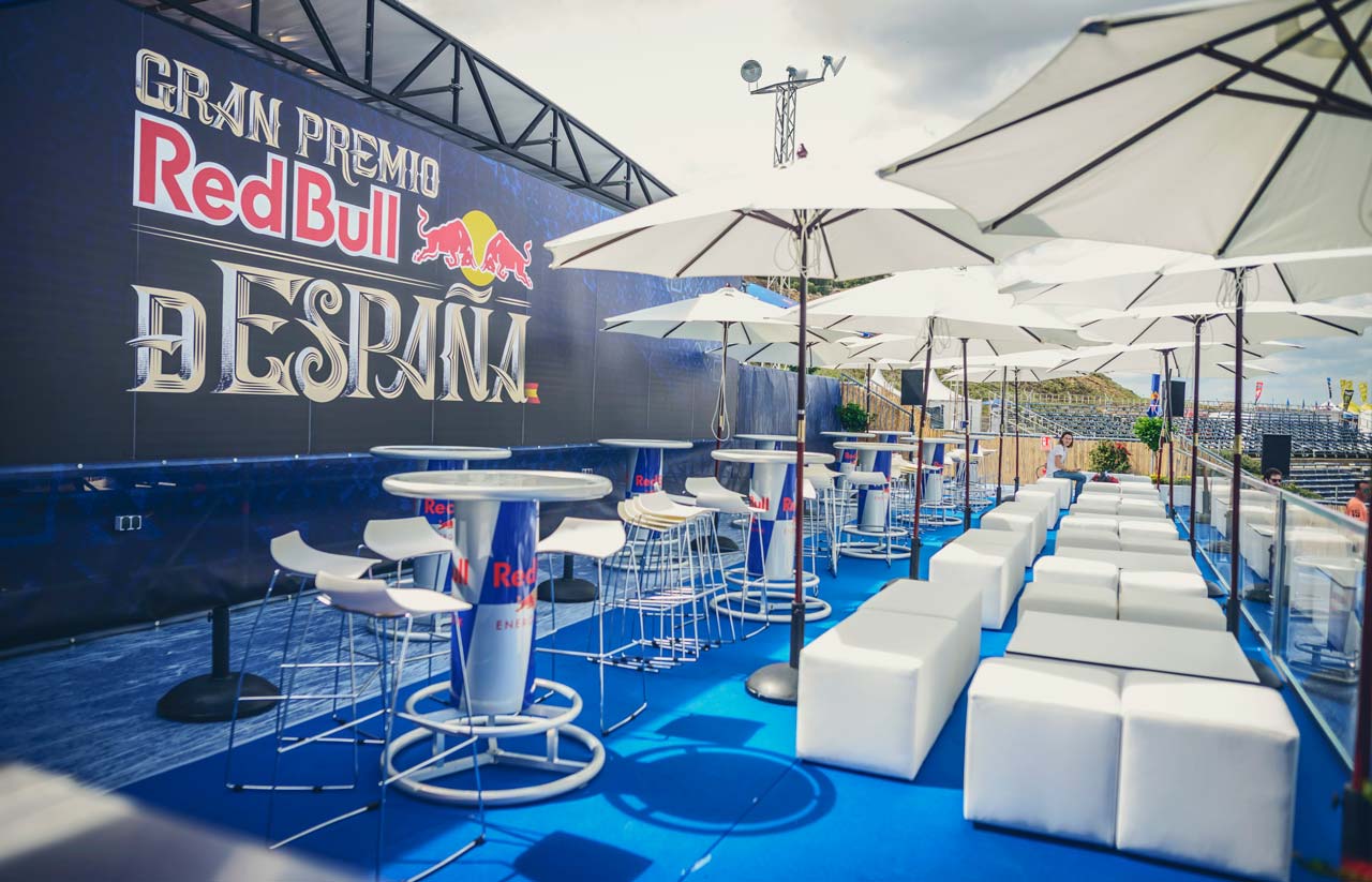 Para activar el consumo, ideamos un espacio en pleno monte de Pelusse (la zona más caliente del circuito y con más afluencia de público), donde los aficionados que ya tenían su entrada para el monte, podían vivir una experiencia espectacular a través de una activación que consistía en la posibilidad de disponer de un pase doble para disfrutar del sábado o el domingo de carreras en un espacio efímero que diseñamos y montamos “adhoc” para Red Bull y que lo llamamos Burladero.