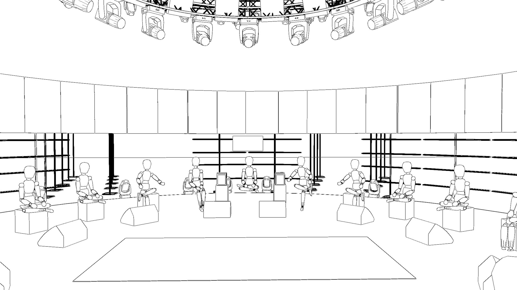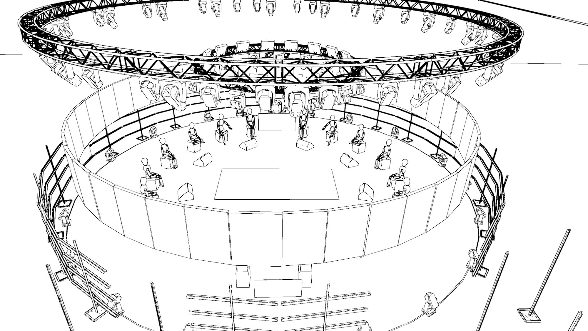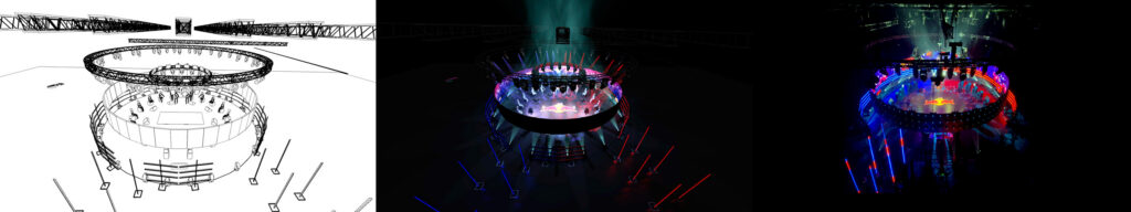 Se desarrollo un manual de trabajo específico, con un rider perfectamente detallado. Renders de los montajes, programación completa de luces, adaptación cuando fuera necesario, y una asesoría total a cada producción local de los países, en donde fuimos participes de todas las reuniones previas y de ejecución de los eventos.