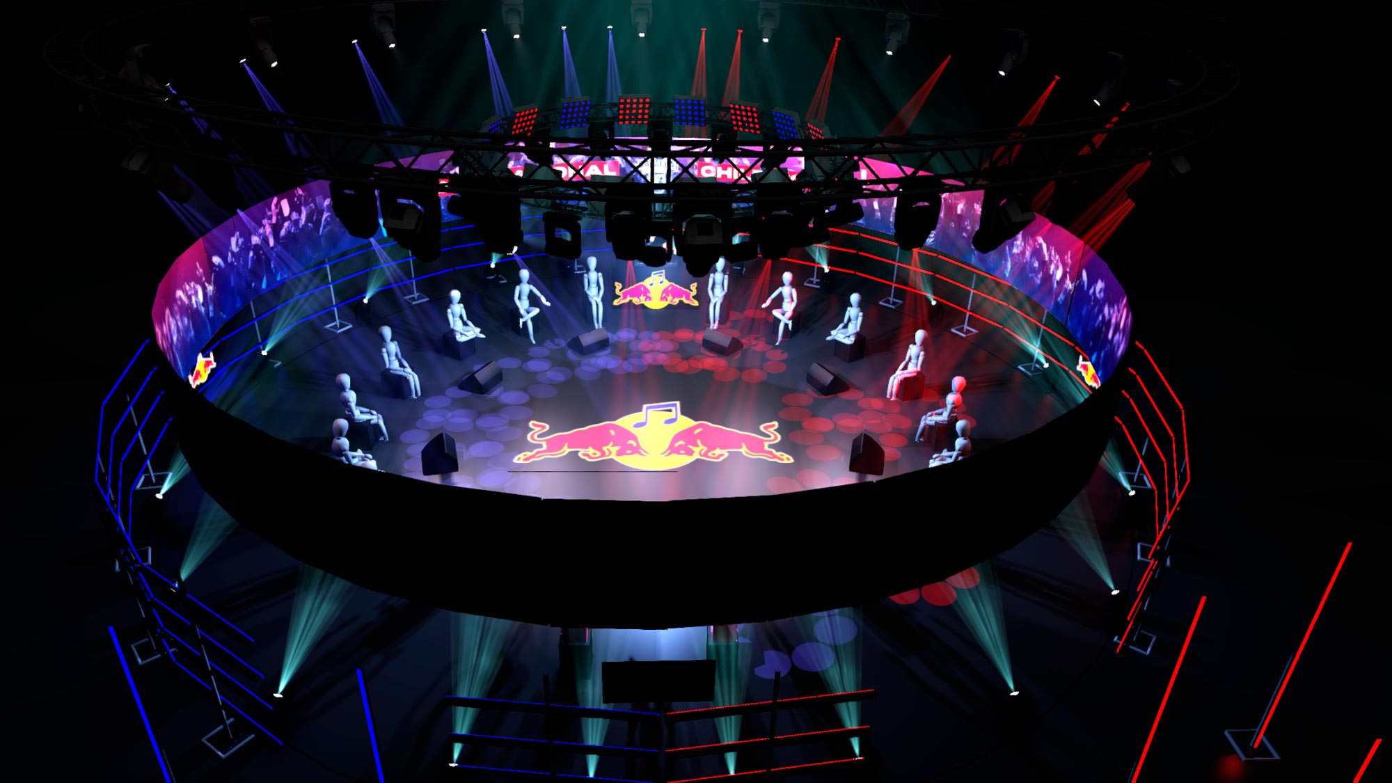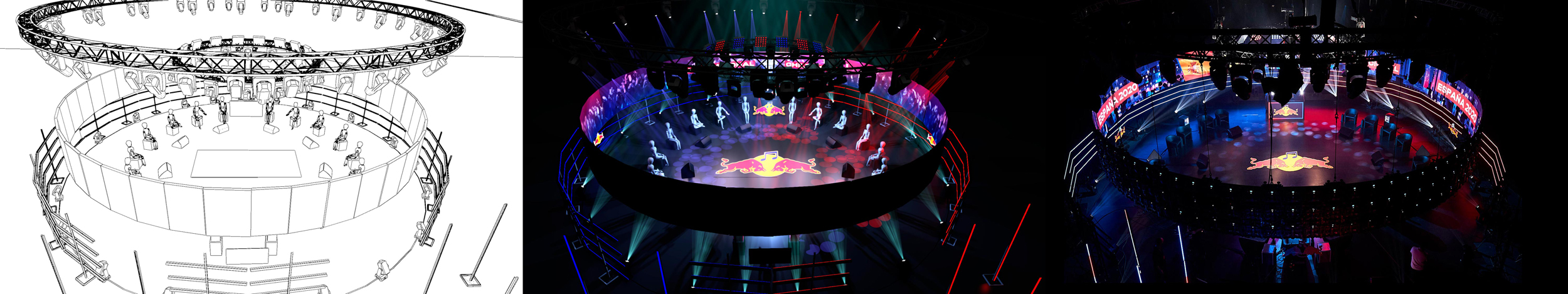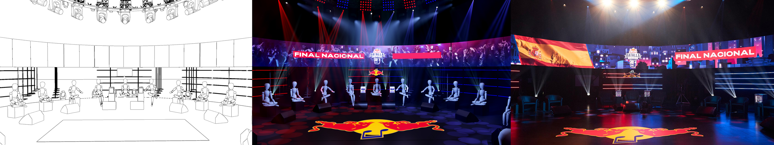 Y muy agradecidos a Red Bull Internacional por su confianza en el proyecto, razón que avala los años de dedicación y buenos resultados que Babblá ha tenido con la Red Bull Batalla de los Gallos, proyecto del que tenemos honor formar y que esperamos que sigamos formando durante muchos muchos años. OS dejamos algunos renders, bocetos y planos del encargo del CYPHER, y el resultado real lo podéis ver en la Finales Nacionales de cada pais. Esperamos que os gusten!