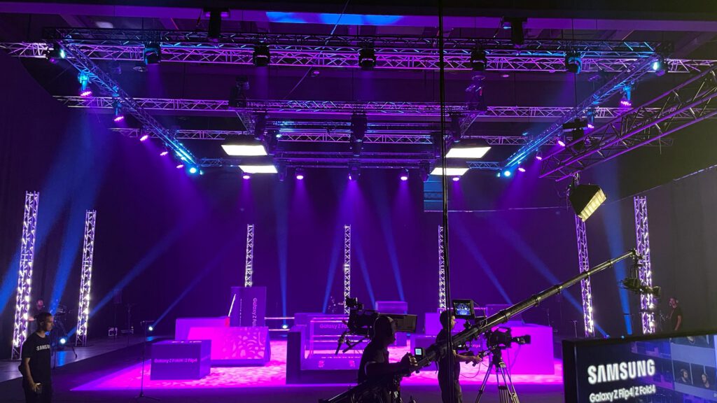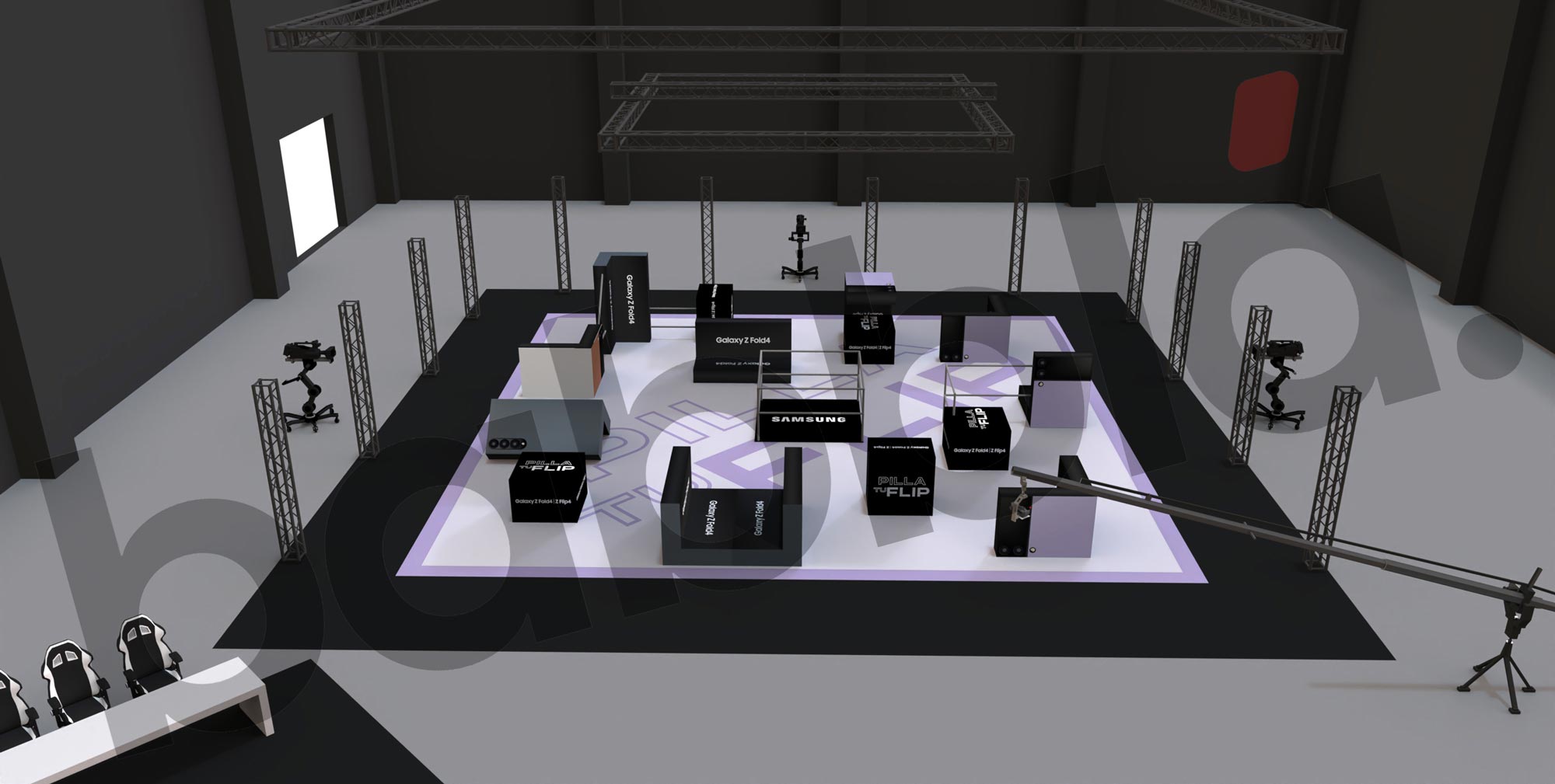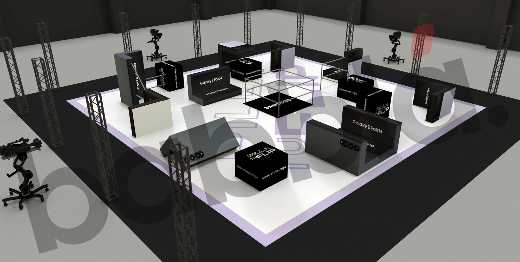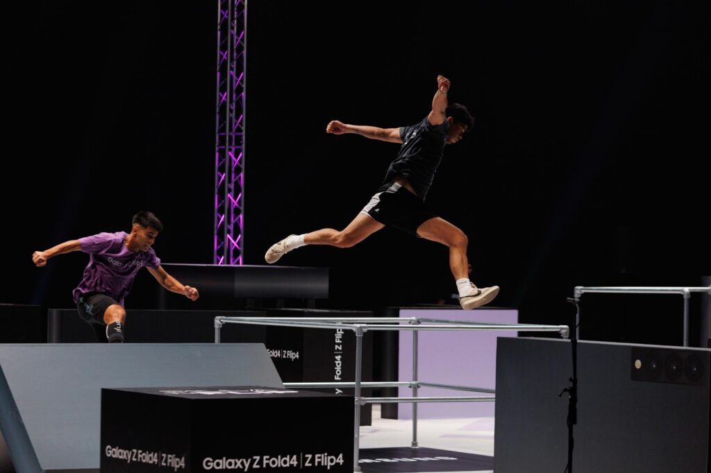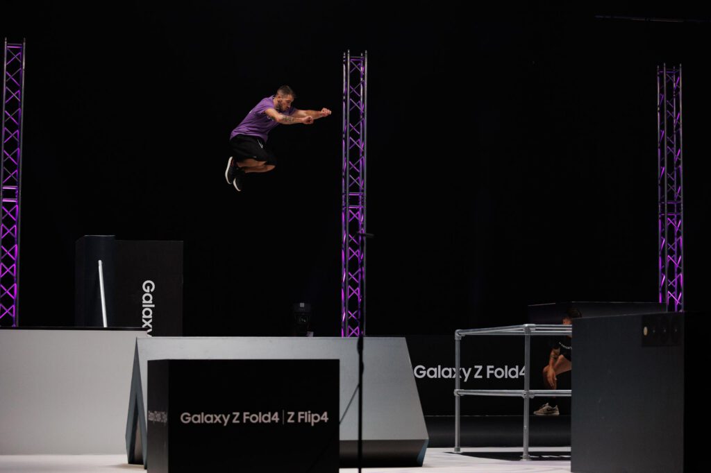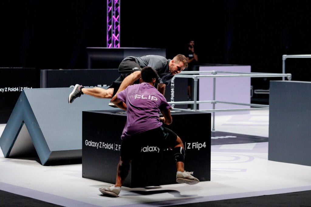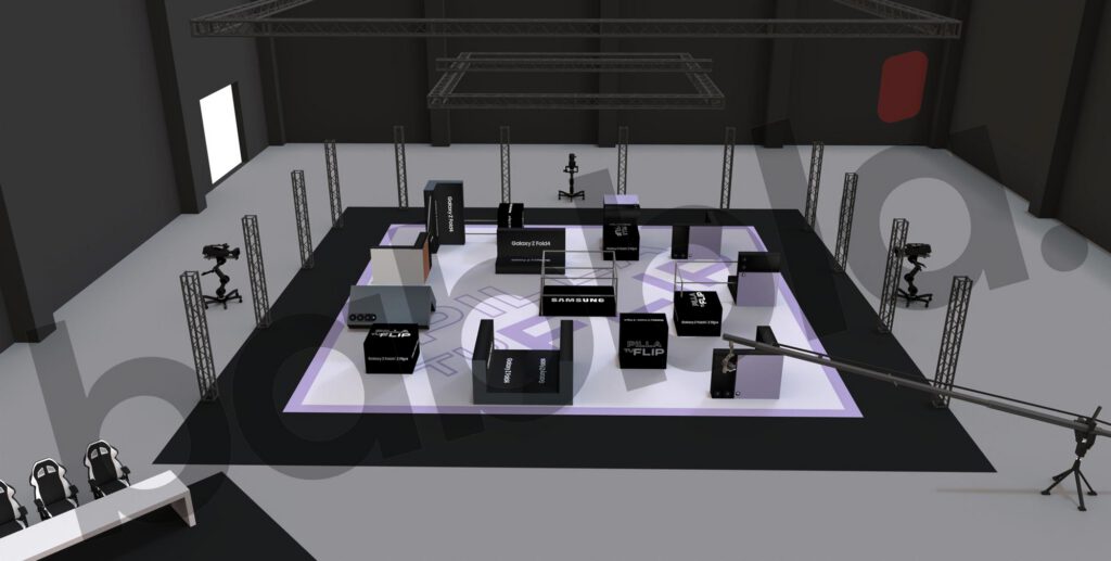 MEDIABRAND había trabajado en una idea para su cliente SAMSUNG en la presentación de sus nuevos modelos de teléfonos moviles: hacer una competición de Pilla Pilla, narrada por Ibai Llanos, y en donde los elementos del terreno de juego fueran recreaciones de estos moviles, en todas las infinitas posturas que permiten su tecnología FLIP o HOLD.