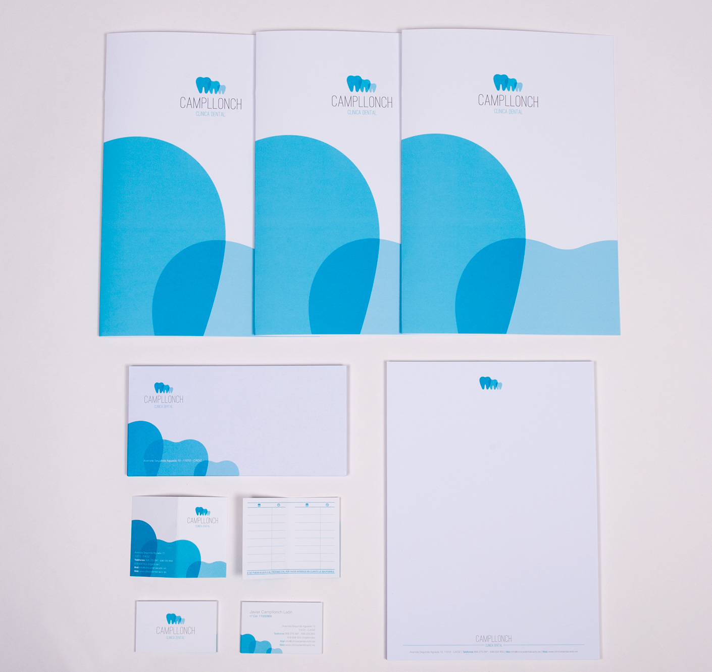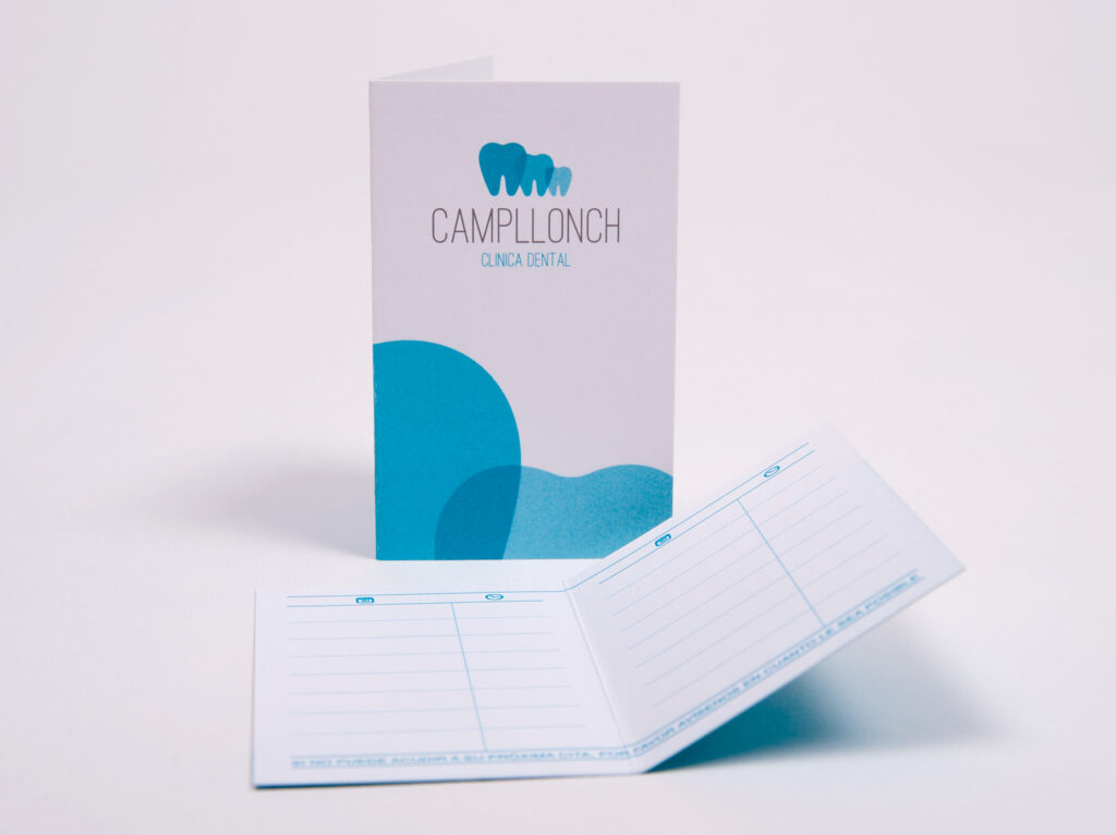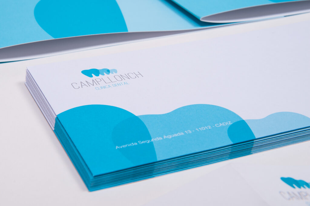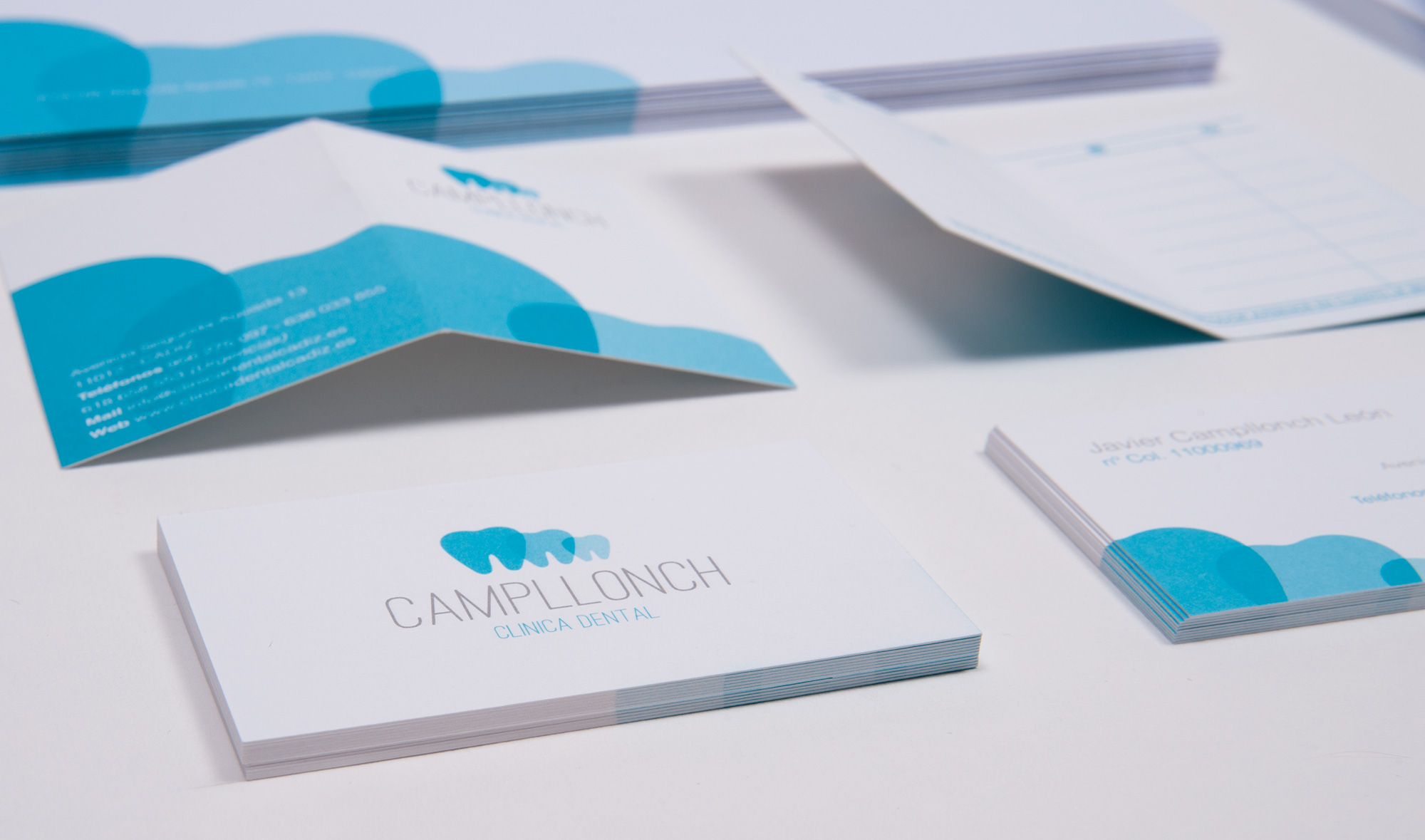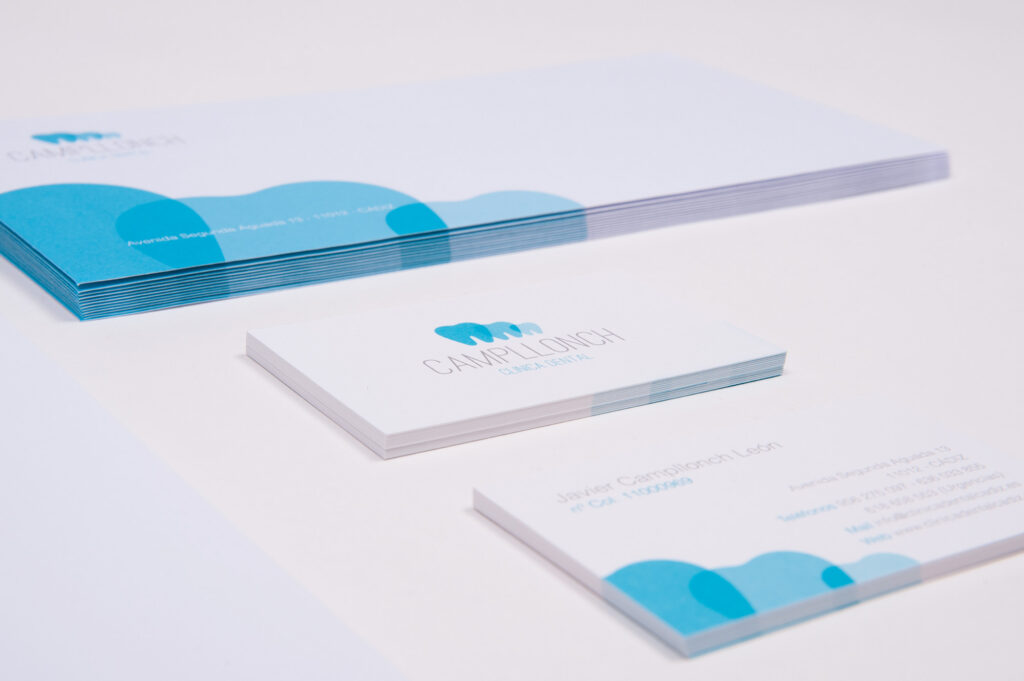 En la Clínica Dental Campllonch quedaron muy contentos con su nuevo logotipo, así que nos encargaron una identidad completa para su papelería corporativa.