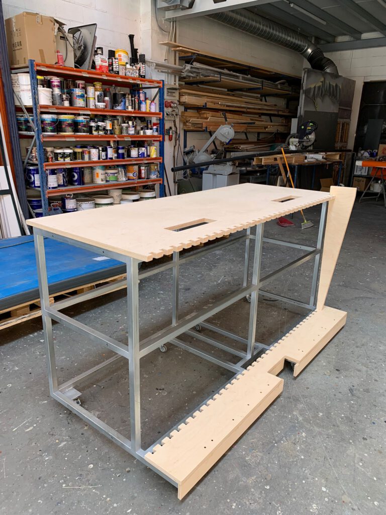 Siempre nos gusto hacer cabinas DJ. Elementos que siempre acompañan las grandes citas de ocio, y hacen resaltar al maestro de ceremonias. Desde que Babblá comenzó, han sido muchas las mesas DJ que han pasado por nuestros talleres, pero es cierto que esta es un tanto especial…