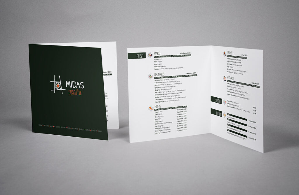 Nos encargaron la imagen corporativa, papelería, señalética, cartas y publicidad tanto en volatinas como para prensa escrita. Una imagen sencilla, guardando la gama cromática del grupo Midas.