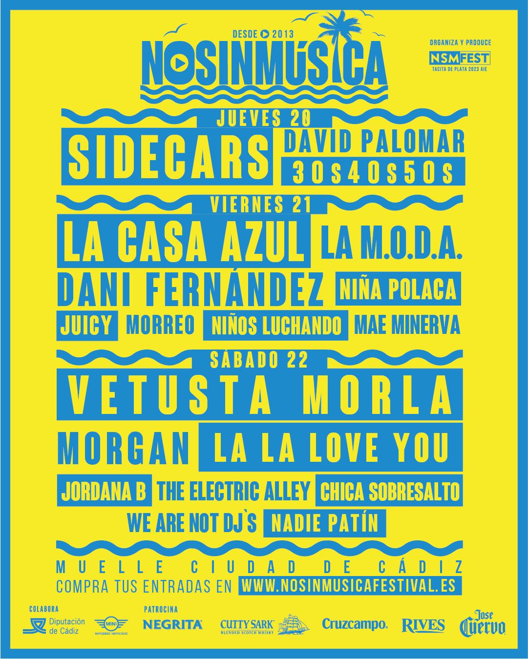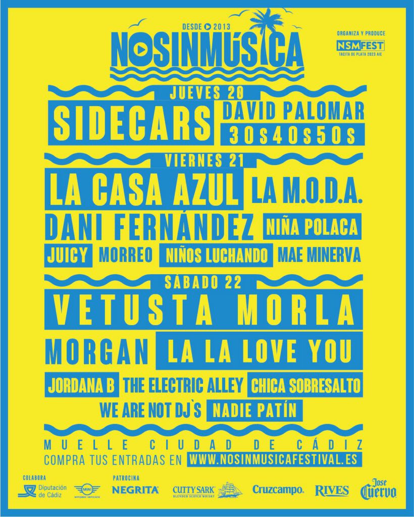 Sin duda, el complemento perfecto para el verano en Cádiz, nuestro festival No Sin Música, que sigue manteniendo su público, su afluencia y la convivencia de muchas generaciones de artistas, públicos y asistentes. Esta pasada edición pudimos disfrutar de artistas como: Vetusta Morla, Sidecars, La casa Azul, Niña Polaca, Juicy, Morgan, Jordana B, The Ellectric Alley entre otros…