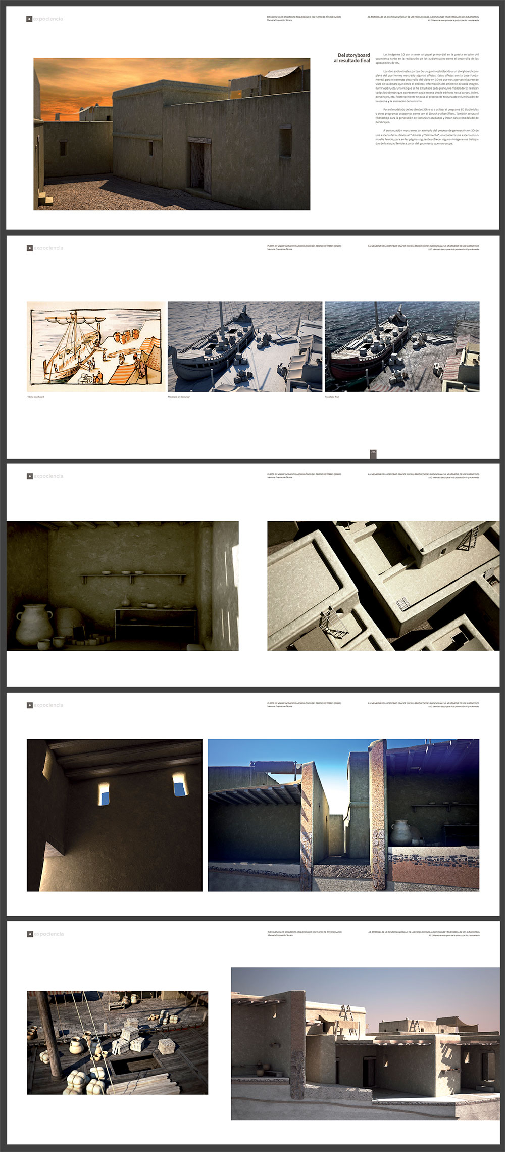 Así presentamos un libro donde desarrollábamos el recorrido museístico, las diferentes actuaciones para ponerlo en valor, aplicaciones multimedia con Realidad Aumentada, las explicaciones por medio de paneles y cine. Y todo ello con una fuerte presencia de reconstrucciones arqueológicas en 3D.