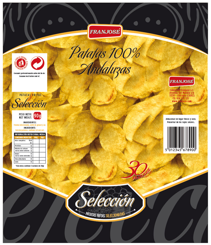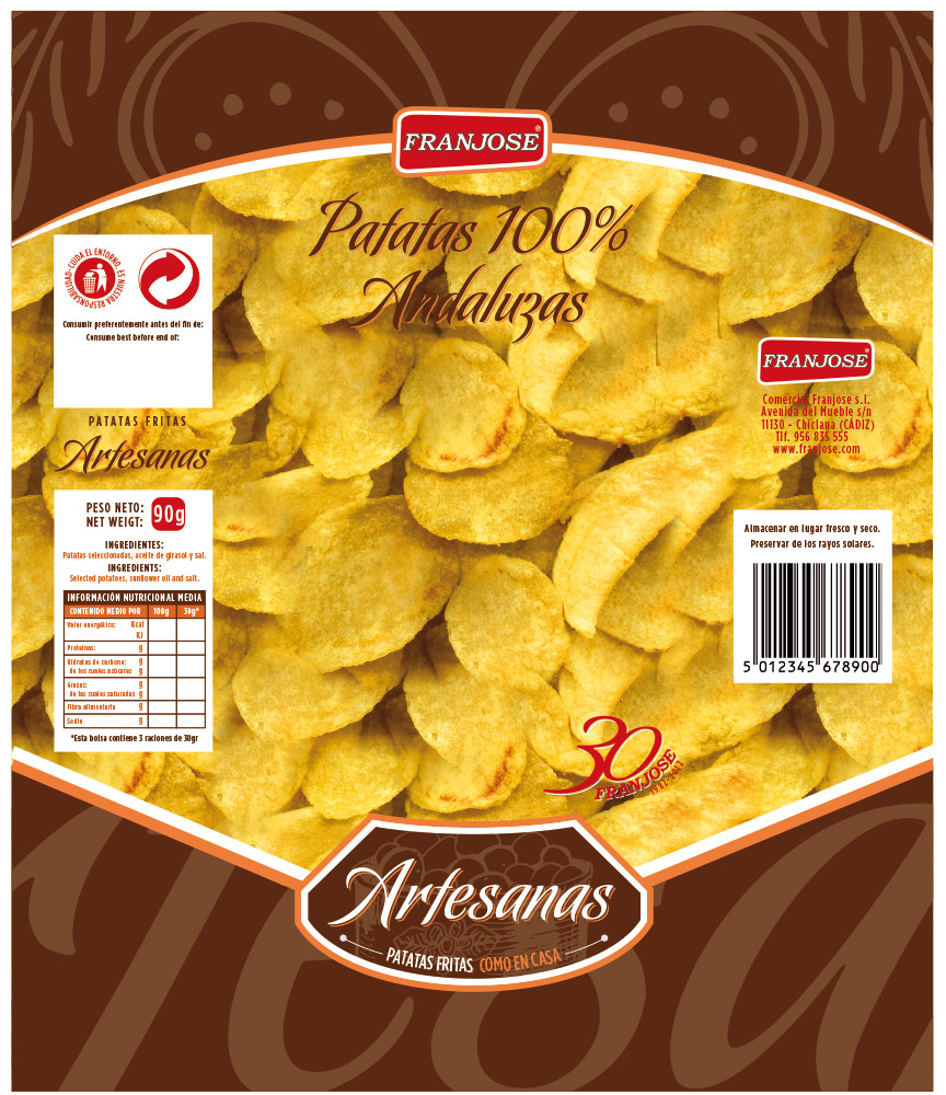 En 2012 recibimos el encargo de cambiar la identidad corporativa y packaging de una de las patatas artesanas más reconocidas de Andalucía: Las Patatas Franjosé.