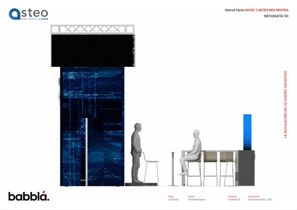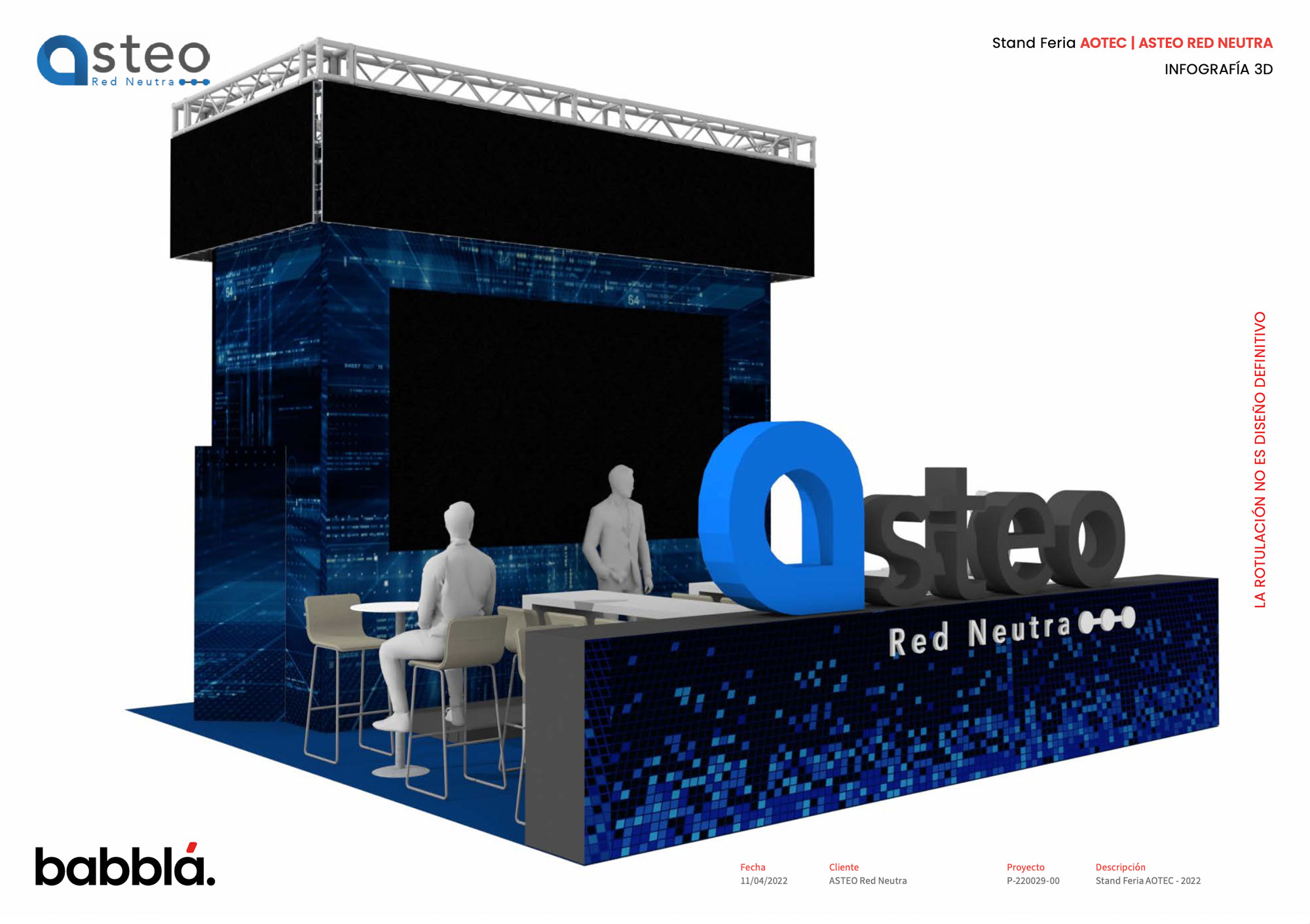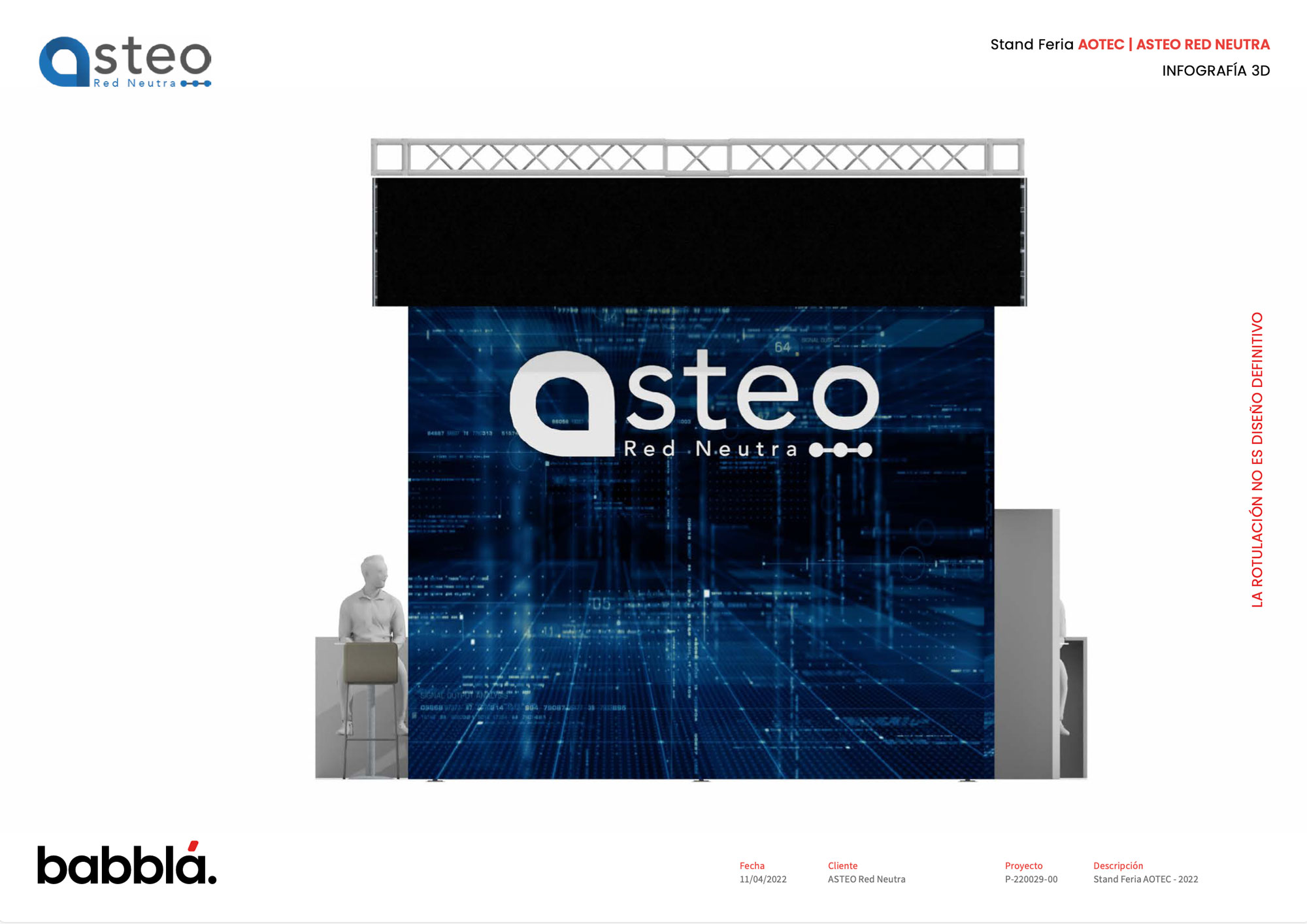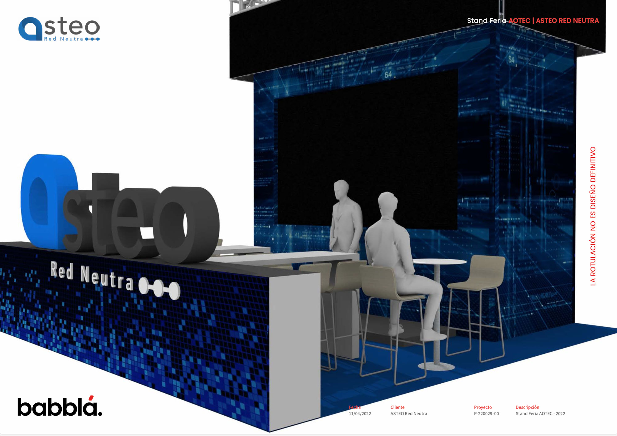 La empresa ASTEO RED NEUTRA nos encargo en el mes de abril el concepto y la fabricación de un stand para la feria AOTEC en Málaga durante el mes de mayo.