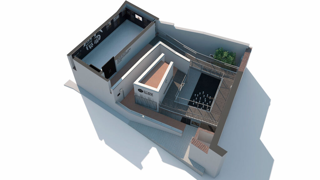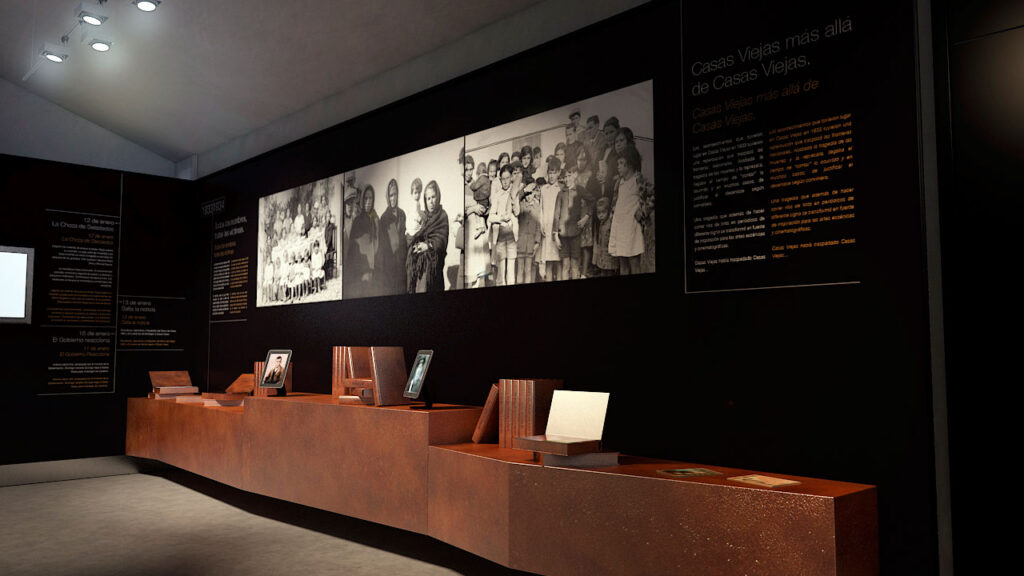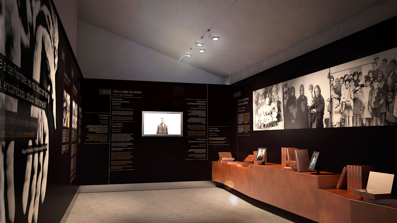 Desarrollamos una propuesta gráfica completa: identidad visual, diseño de los paneles, recreación en 3D de las obras que se pensaban realizar, así como un trabajo de maquetación y diseño acorde al discurso que los documentalistas nos fueron describiendo. ¿El resultado?, el mejor posible: nos adjudicaron el proyecto y, tras algunos cambios respecto a la propuesta inicial, desarrollamos todo el contenido gráfico definitivo del espacio.