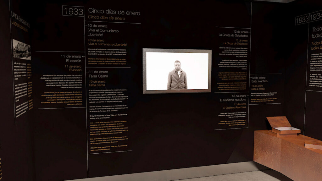 En 2014, la Diputación de Cádiz sacó a concurso un proyecto para la documentación y puesta en valor del Espacio Conmemorativo de la Memoria de las Víctimas de los Sucesos de Casas Viejas 1933. En ese momento contactó con nosotros la empresa Expociencia SL, líder en proyectos museográficos y expositivos a nivel nacional (Museo del Jurásico de Asturias, Exposición “Gallaecia Petrea” en Santiago de Compostela, etc.) con presencia en Latinoamérica y especializados además en proyectos audiovisuales, multimedia, comunicación, arquitectura, infografía y 3D.